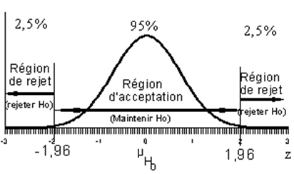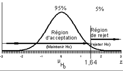 Ainsi, on a 5% de risque de rejeter H0 si elle est vraie.